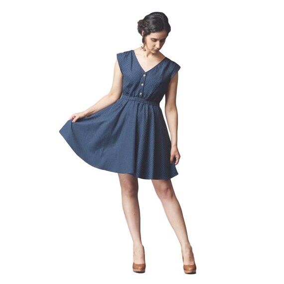 Subtly fitted blouse with Chelsea collar and shoulder yoke. Deer Doe produce well-drafted sewing patterns that are both easy to sew and wear. Sleeveless dress cinched at the waist with an A-line skirt and diagonal pockets.