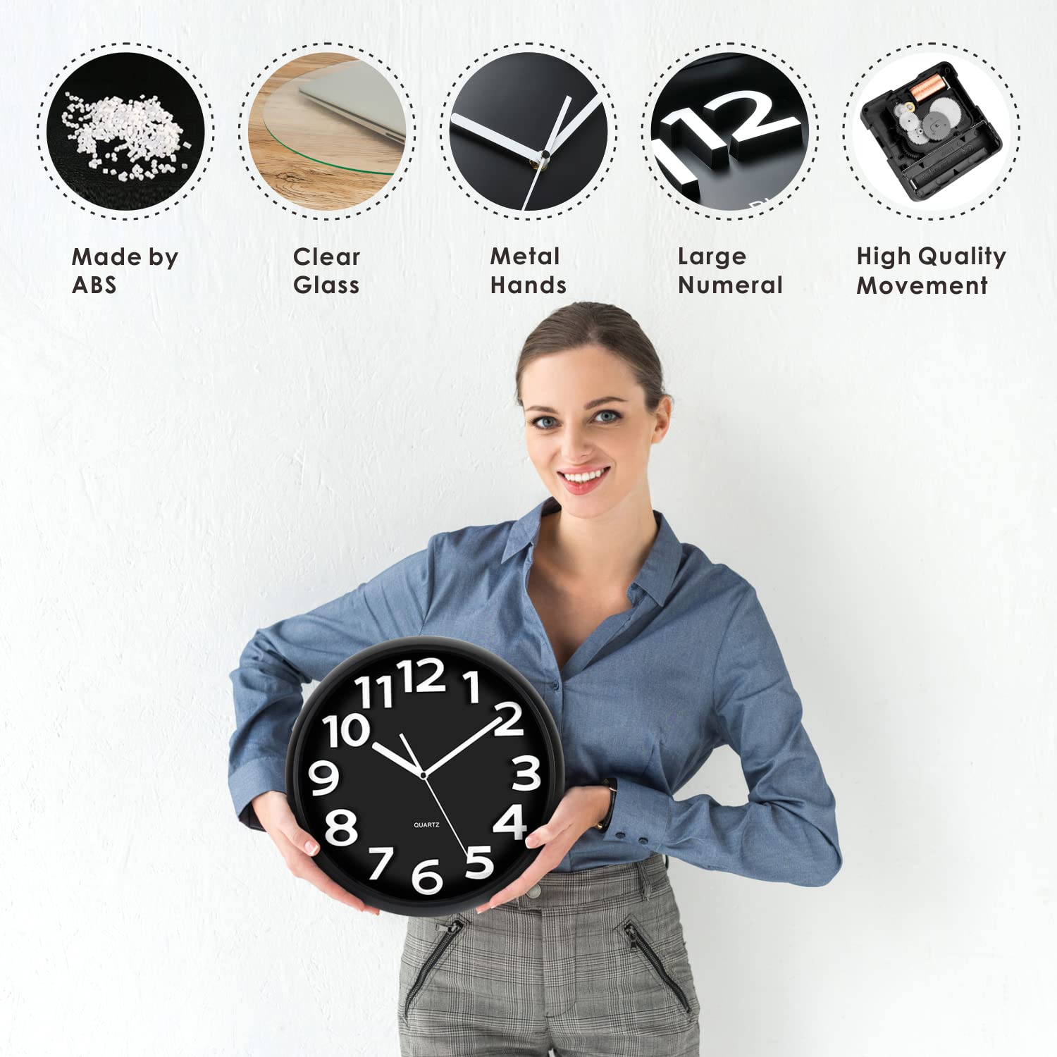 Amazon Com 13 Black Wall Clock Plumeet Large Battery Operated Wall Clocks Silent Non Ticking Quartz Modern Style Suitable For Bedroom Living Room Office Decor 3d Numbers Display Easy To Read Home