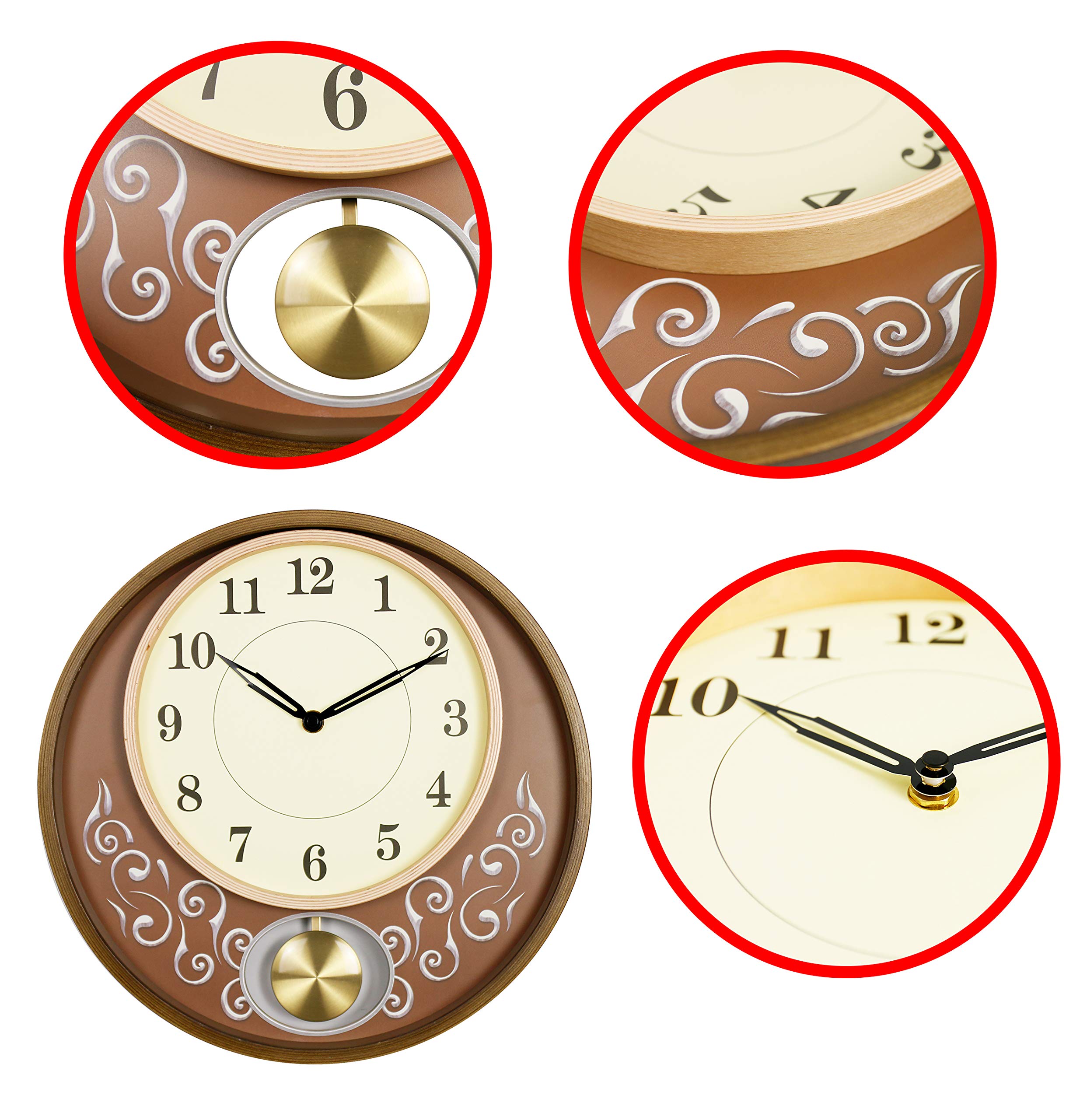 Amazon Com Bestime 13 Inch Vintage Wooden Wall Clock With Pendulum Look Grace Classic And Vintage Battery Operated Non Ticking Quartz Large Round For Living Room Office Home Decor Gift Home