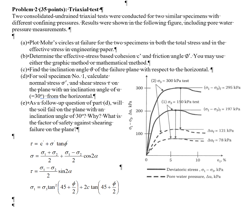 Solved Problem 2 35 Points Triaxial Test Two Chegg Com